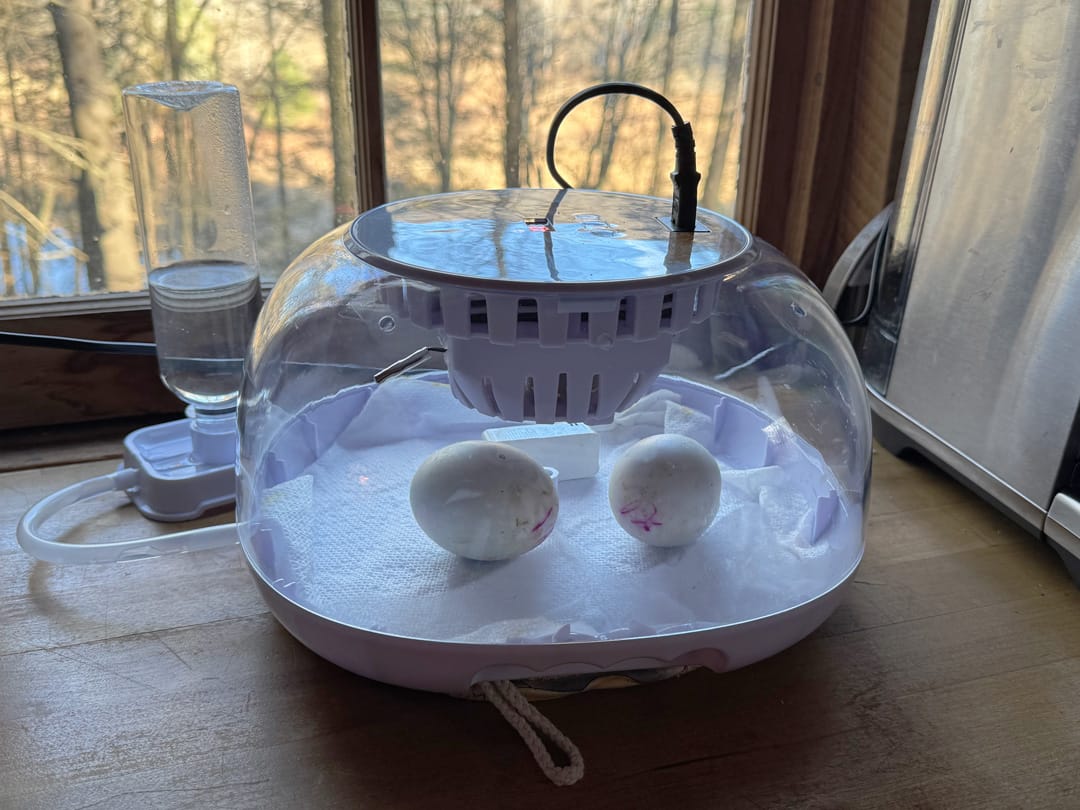 They’re still developing, but not yet at the same pre-hatch “dip down” stage as eggs #3 and #4. For now, I’m keeping them in the main incubator so they can continue developing under stable conditions.