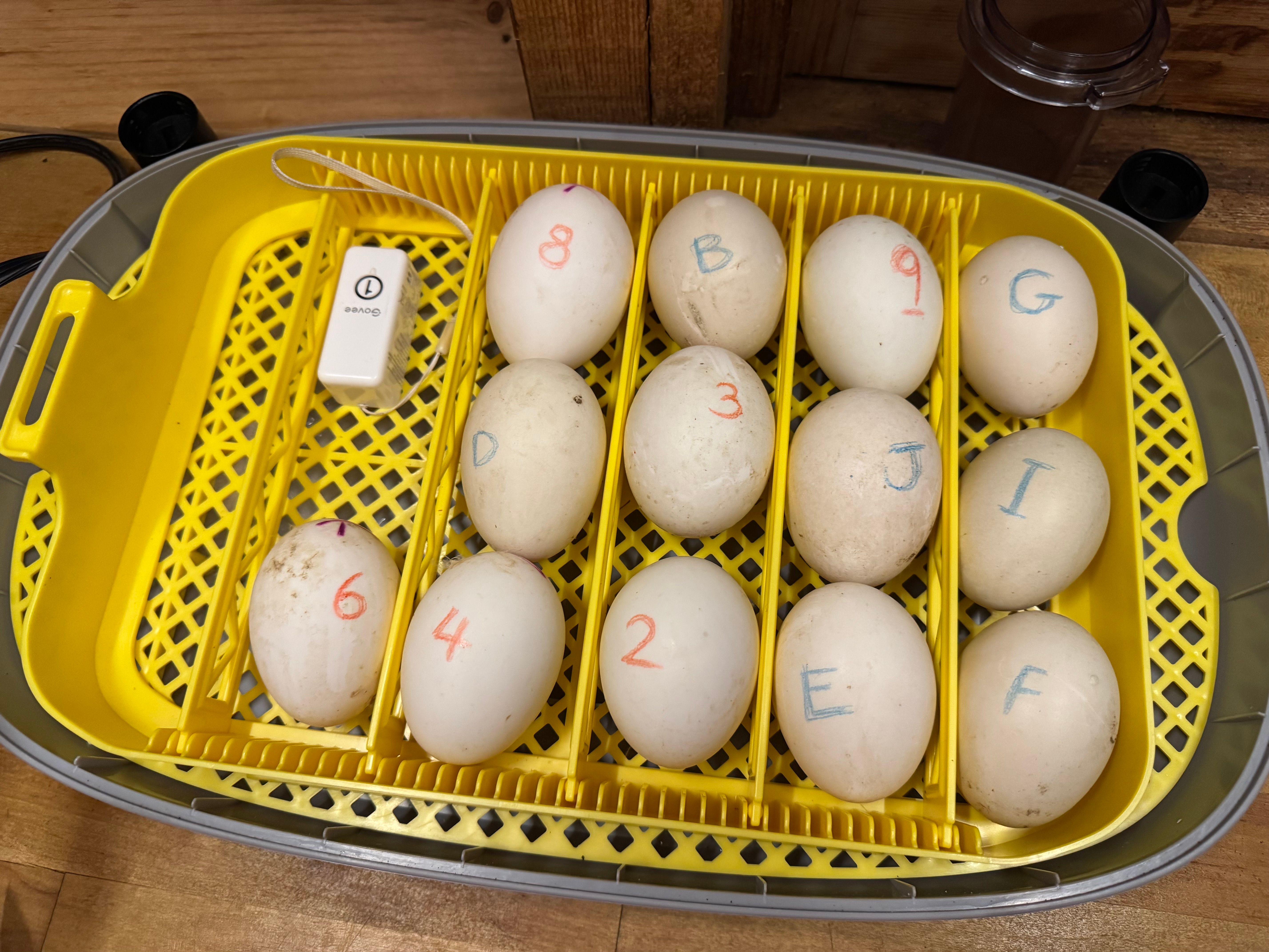 This is where an 🥚eggcell speadsheet🥚 comes in handy. I weigh each egg regularly and compare the results against a projected weight-loss curve. If eggs lose moisture too quickly or too slowly, the incubator’s humidity can be adjusted to bring them back on track.