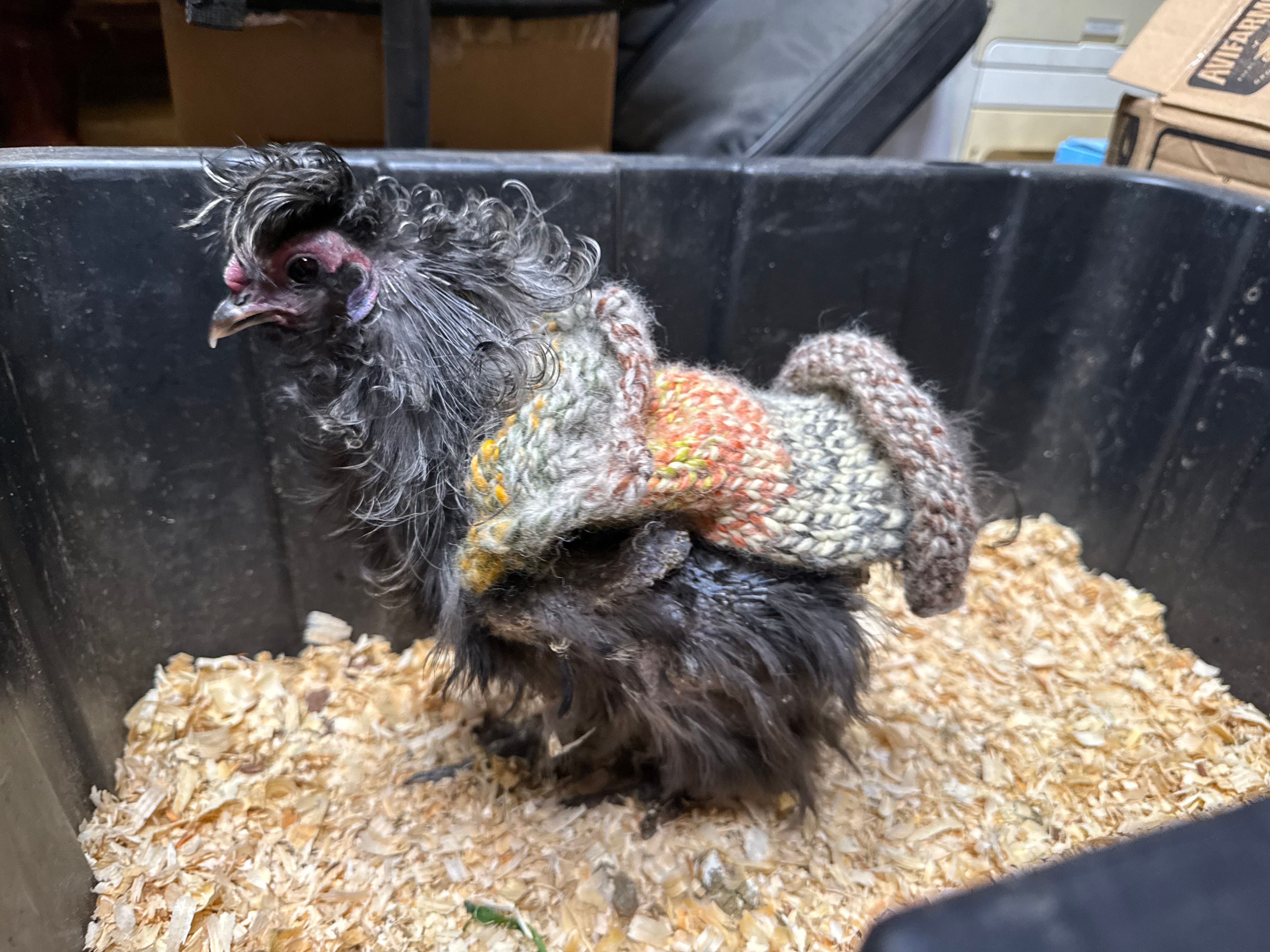 Bucky, one of my more gentle roosters, had been getting bullied by the others recently, which unfortunately resulted in some damaged tail and back feathers. So for the moment he’s enjoying a quieter life indoors while things settle down.