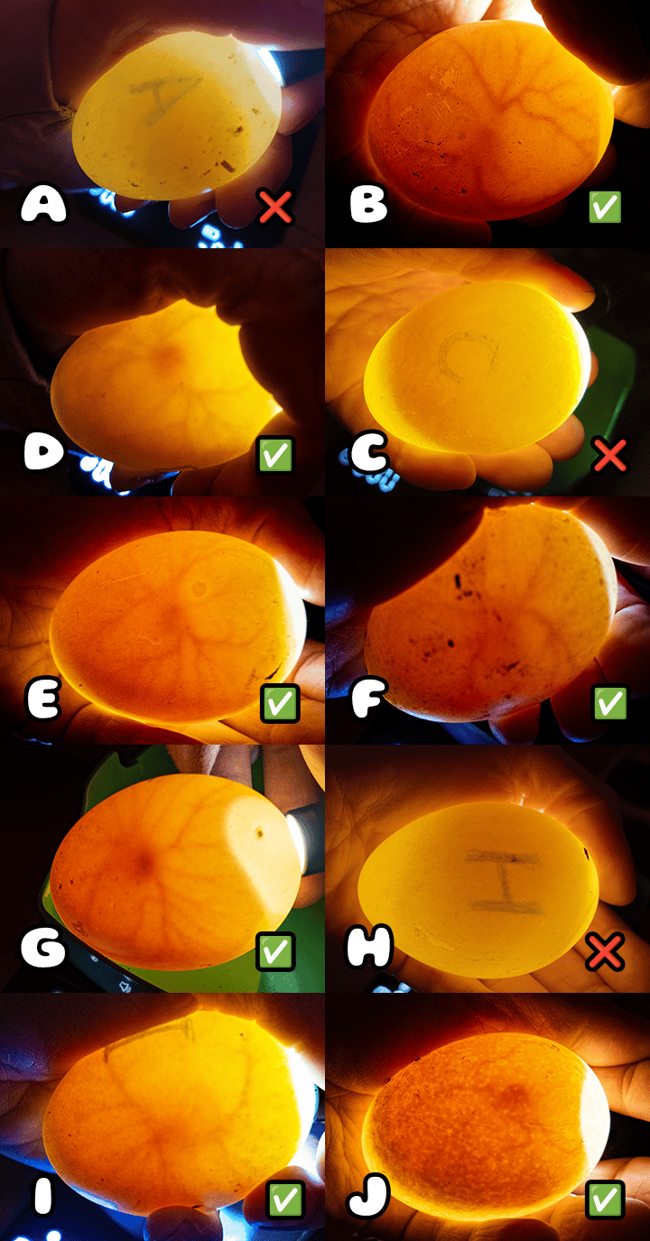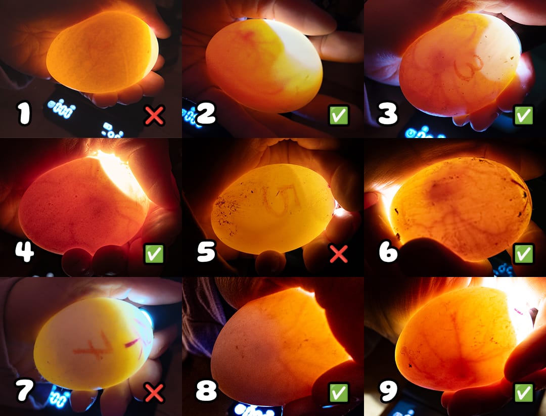 The remaining 13 eggs are developing nicely, and the vascular structures are clearly visible when candled. Very 🥚eggciting🥚 indeed.