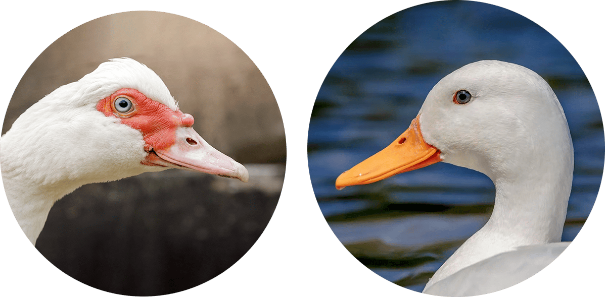 L: Adult white Muscovy duck* R: Adult Pekin Duck**