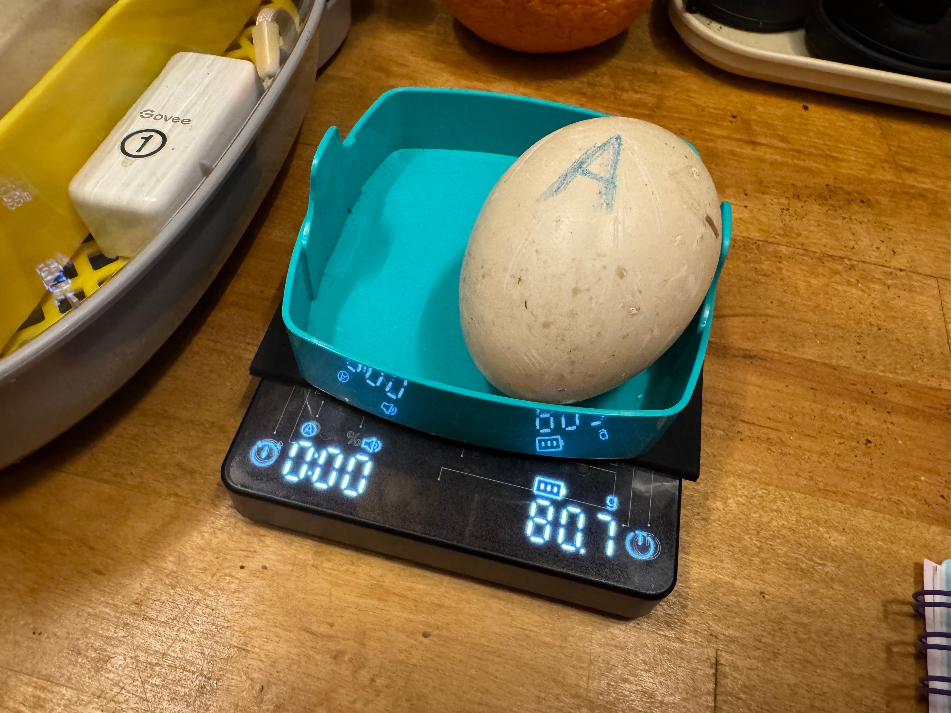 To make sure development stays on track, I’ll reweigh the eggs every couple of days and adjust the incubator’s humidity if they’re losing weight too quickly or too slowly.